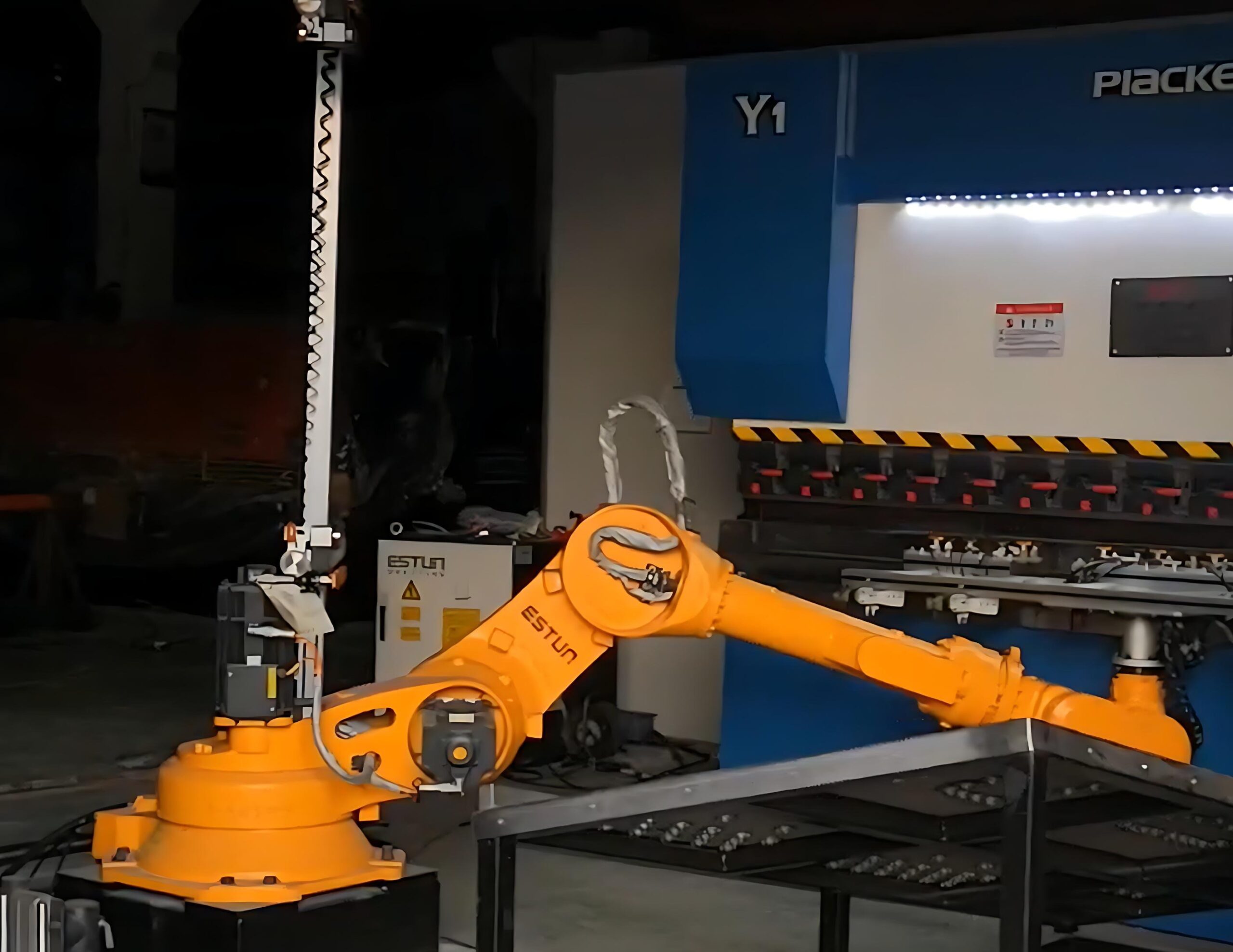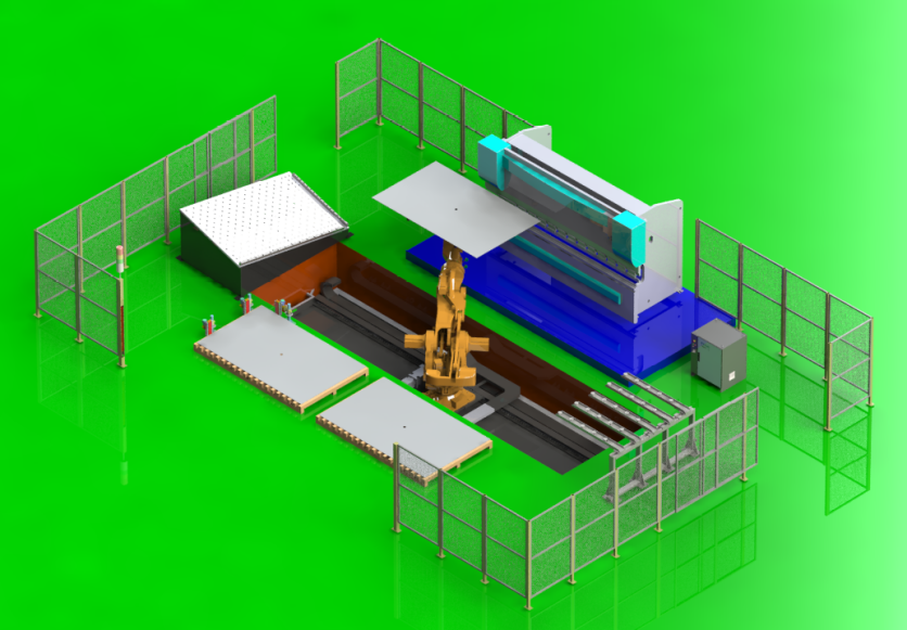 4.Robot processes work piece with press brake